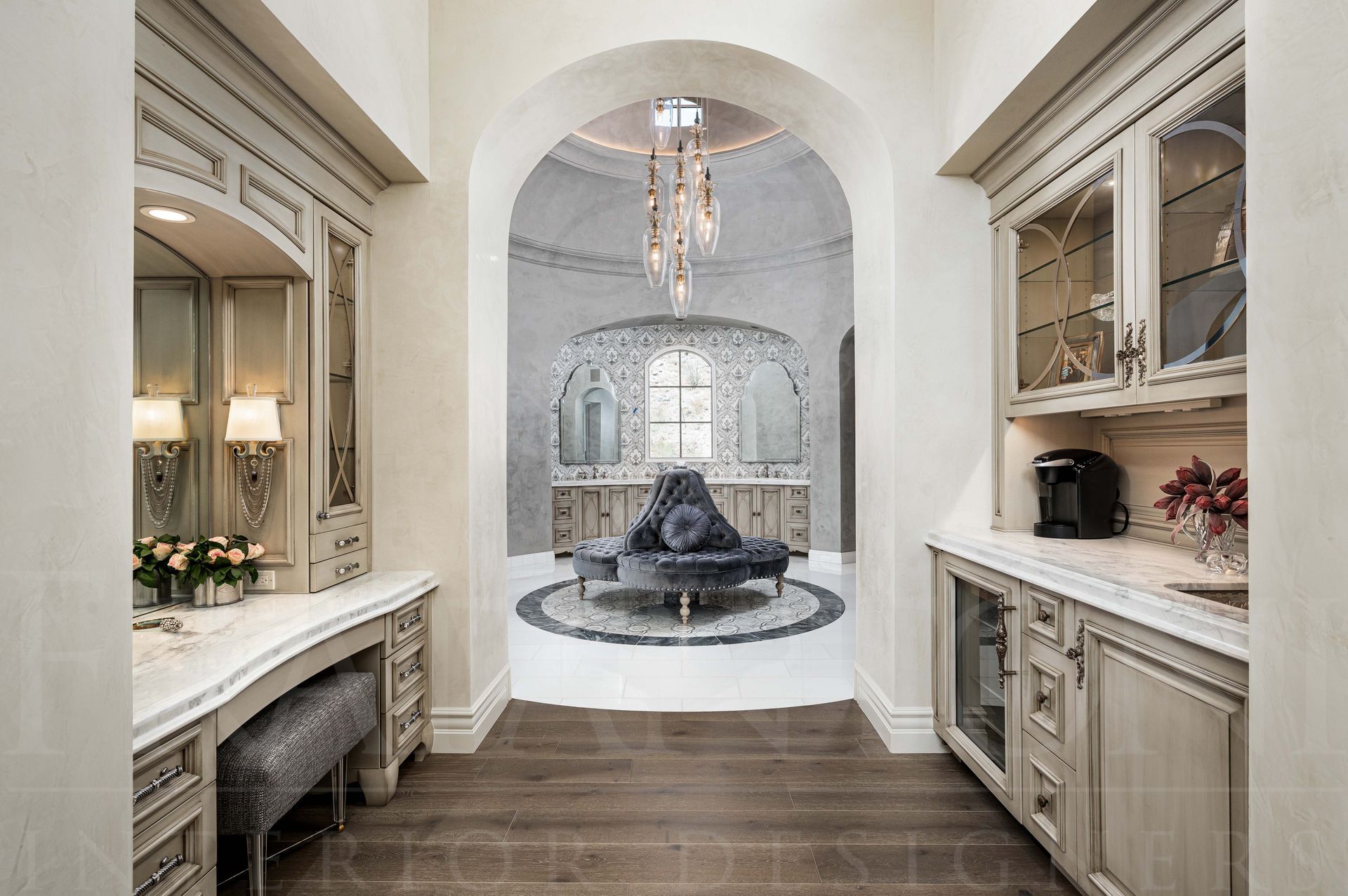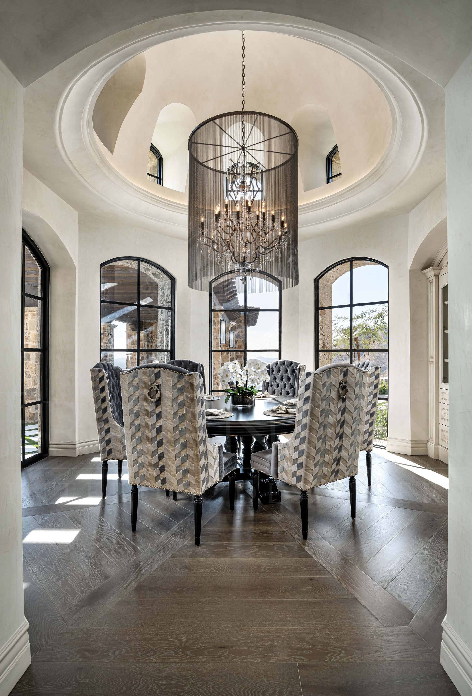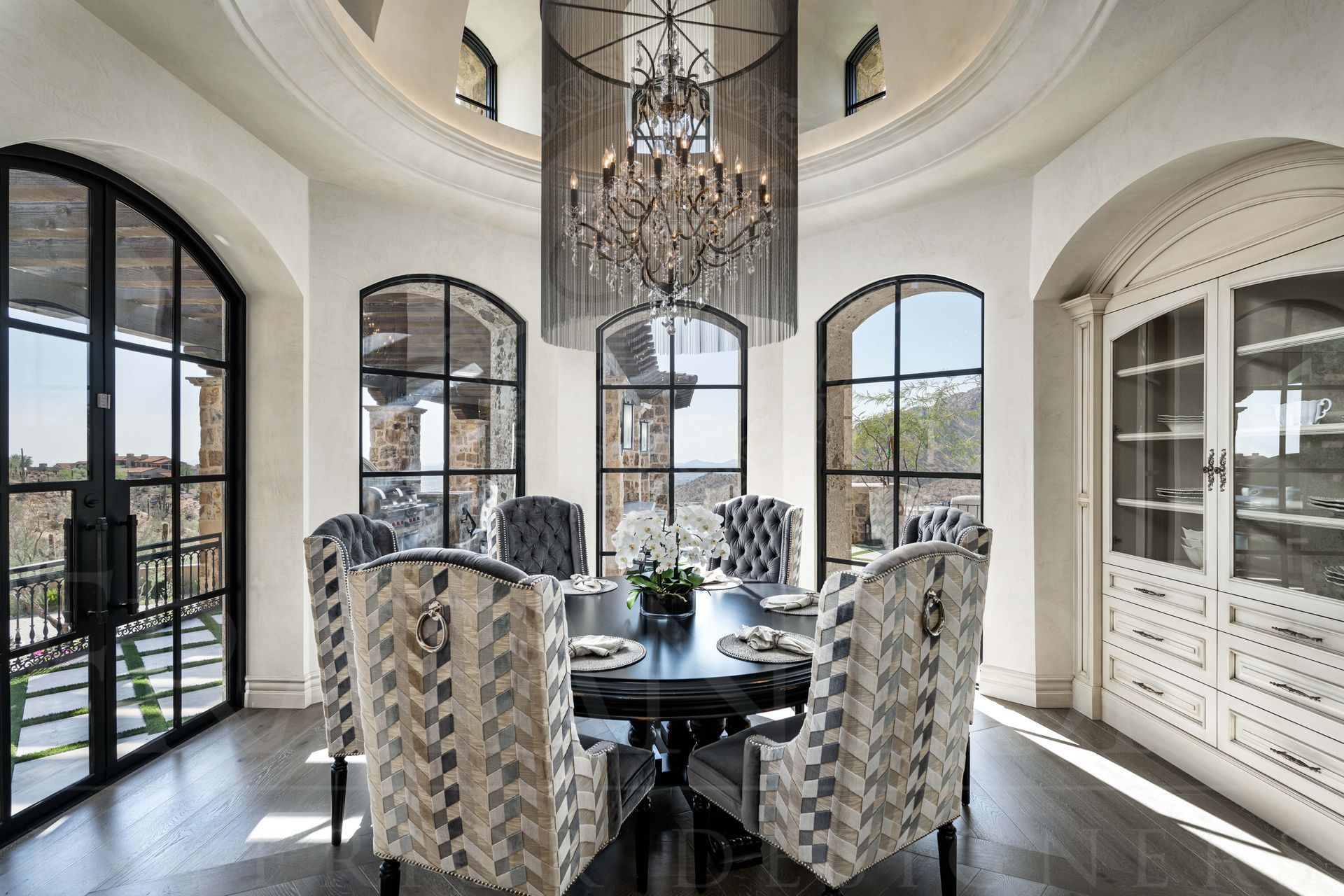 Fratantoni Interior Designers has over 40 years of expertise in designing custom luxury interiors for families nationwide. The French Luxury Estate, the renowned “Castle on the Hill,” rises in Silverleaf’s Upper Canyon as a symbol of timeless elegance. This transitional home blends sophistication with modern sensibilities, offering sweeping city views for unforgettable entertaining.