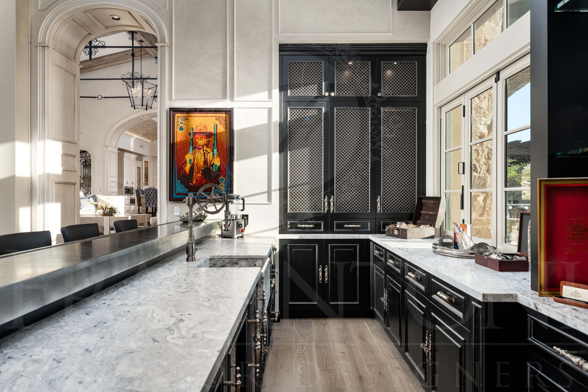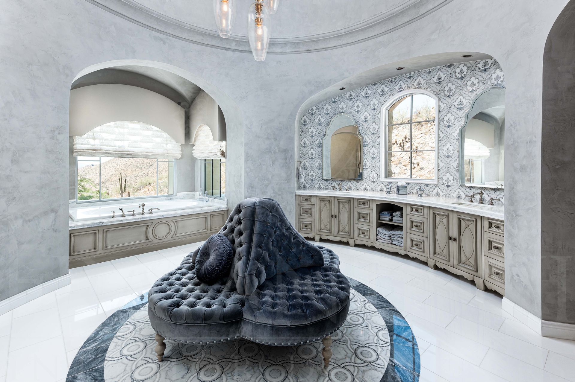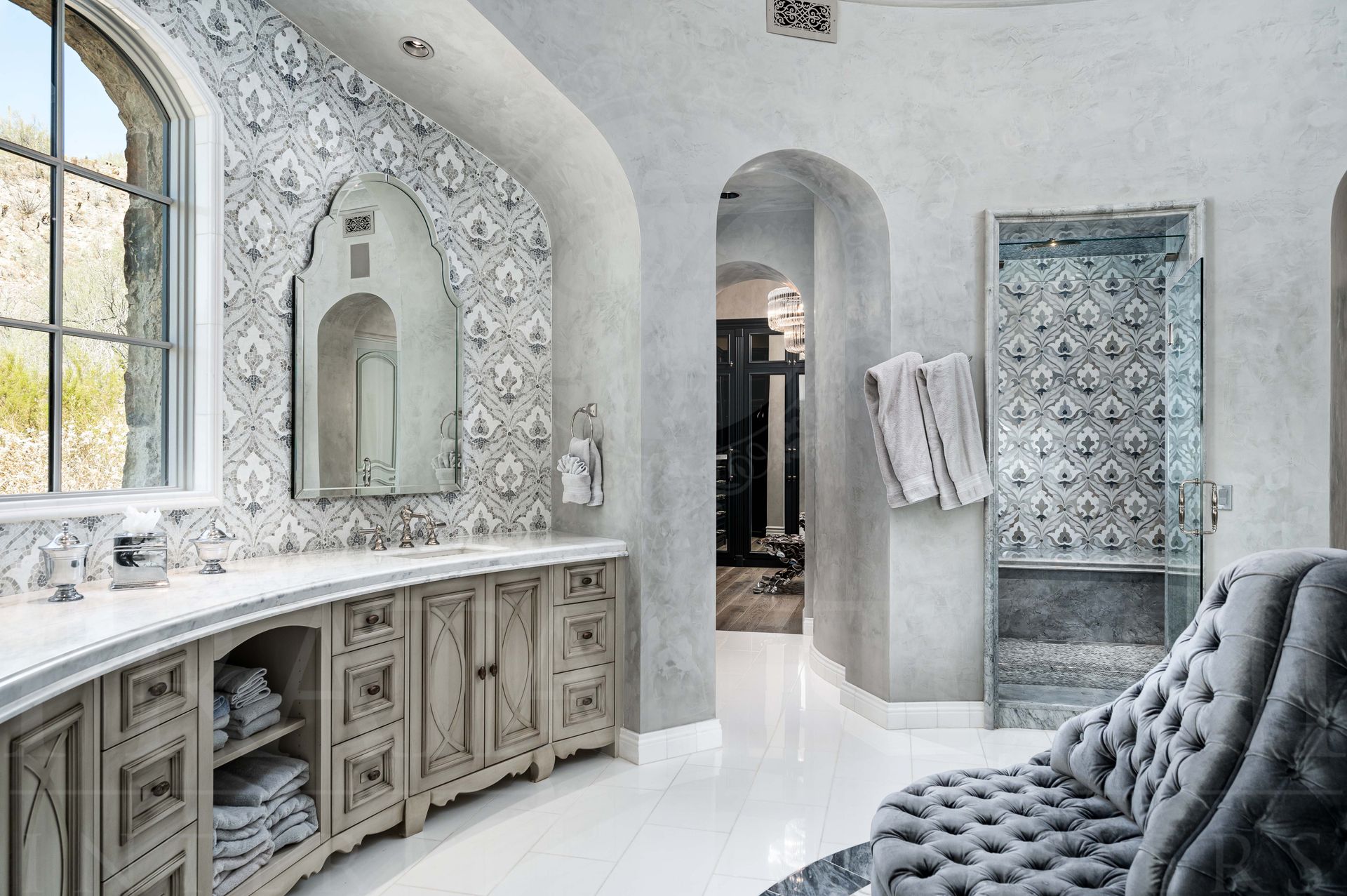 Fratantoni Interior Designers has over 40 years of expertise in designing custom luxury interiors for families nationwide. The French Luxury Estate, the renowned “Castle on the Hill,” rises in Silverleaf’s Upper Canyon as a symbol of timeless elegance. This transitional home blends sophistication with modern sensibilities, offering sweeping city views for unforgettable entertaining.