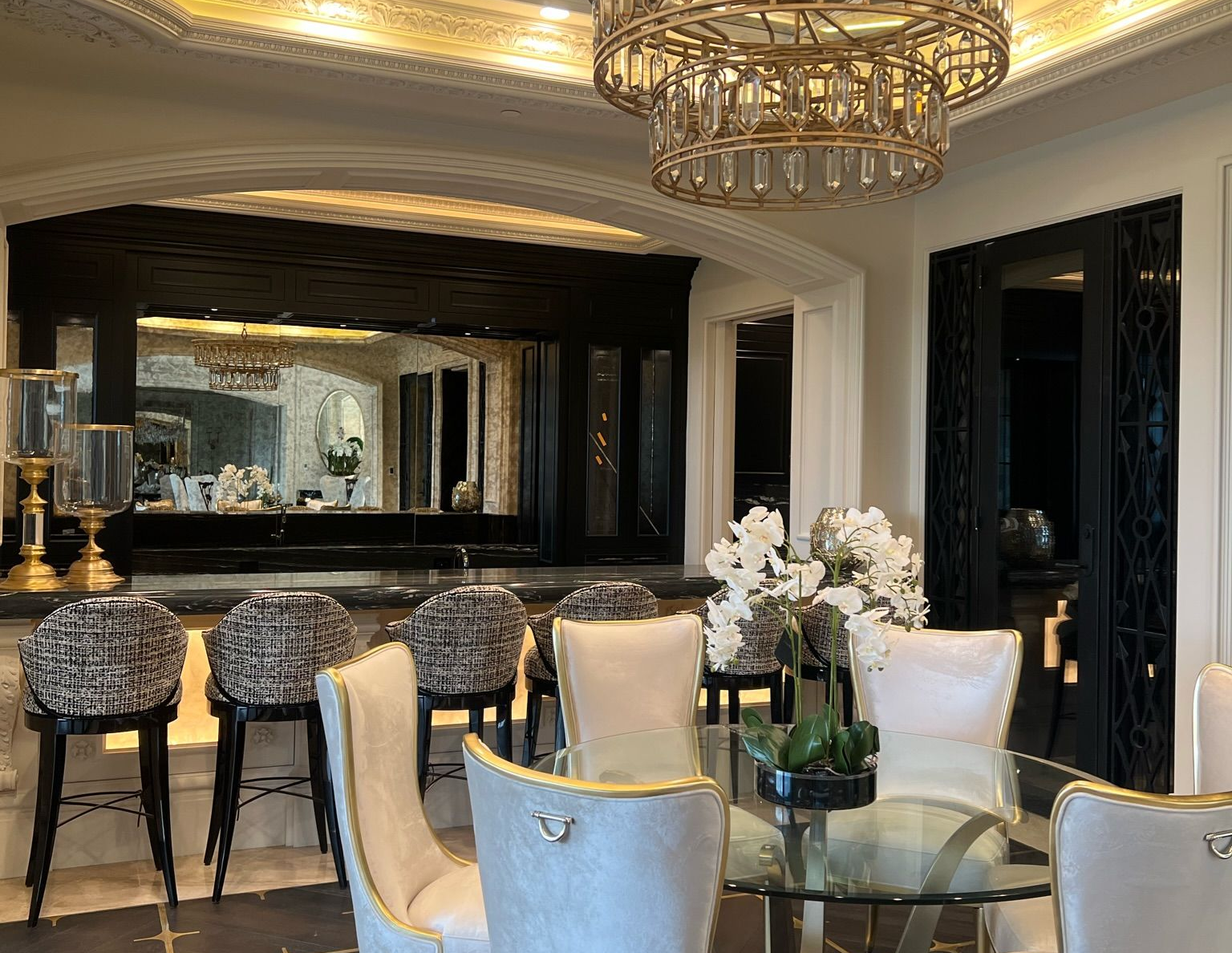 We also rely on texture to create visual interest. A mix of linen, velvet, wood, metal, glass, and stone allows a space to feel rich and dynamic. We pair sleek finishes with soft details, and vintage pieces with modern lines, creating the layered, collected look that defines true luxury.